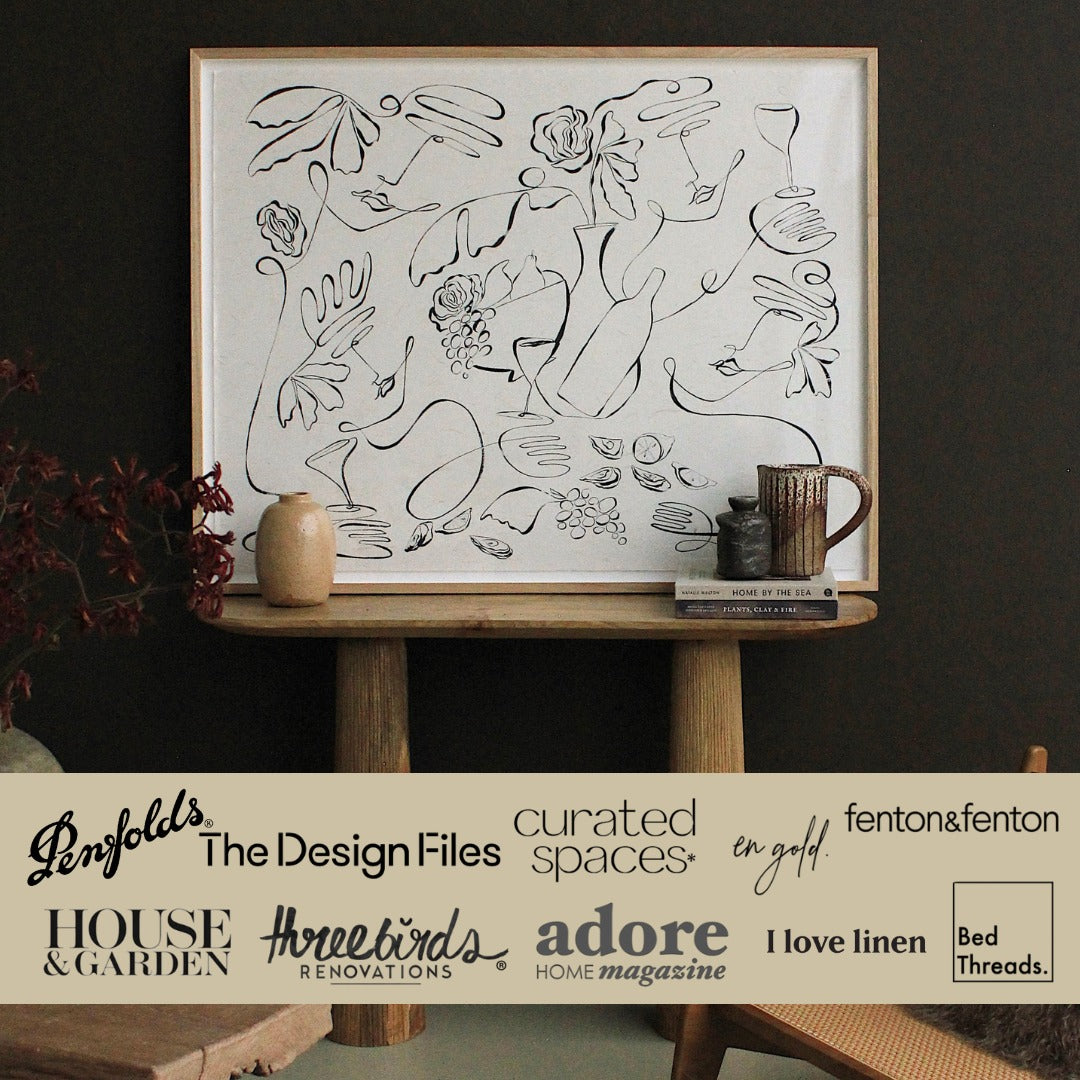 Alongside being found in private collections globally, Rikki's artworks have been recognised and used by design industry leaders such as The Design Files, Three Birds Rennovations, Fenton & Fenton, En Gold, Bed Threads, Home & Garden magazine,Adore Magazine, I love linen, Penfolds and many more