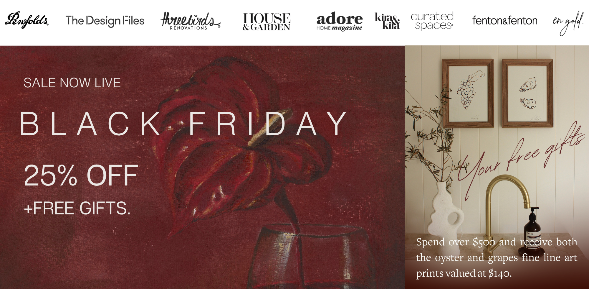 Prices as marked + free gifts added at checkout on all orders over $500.