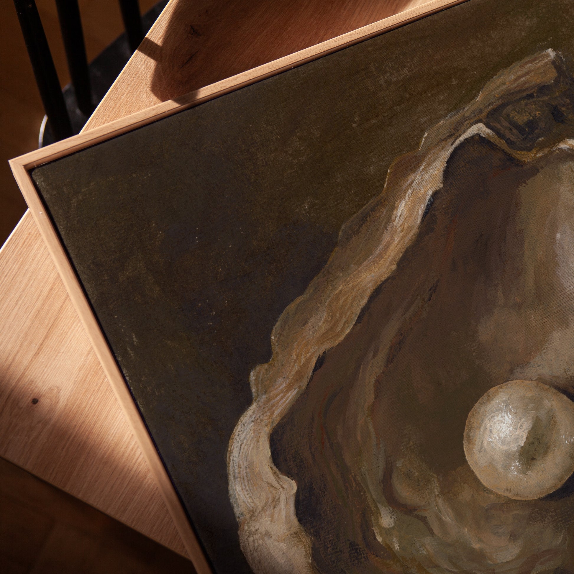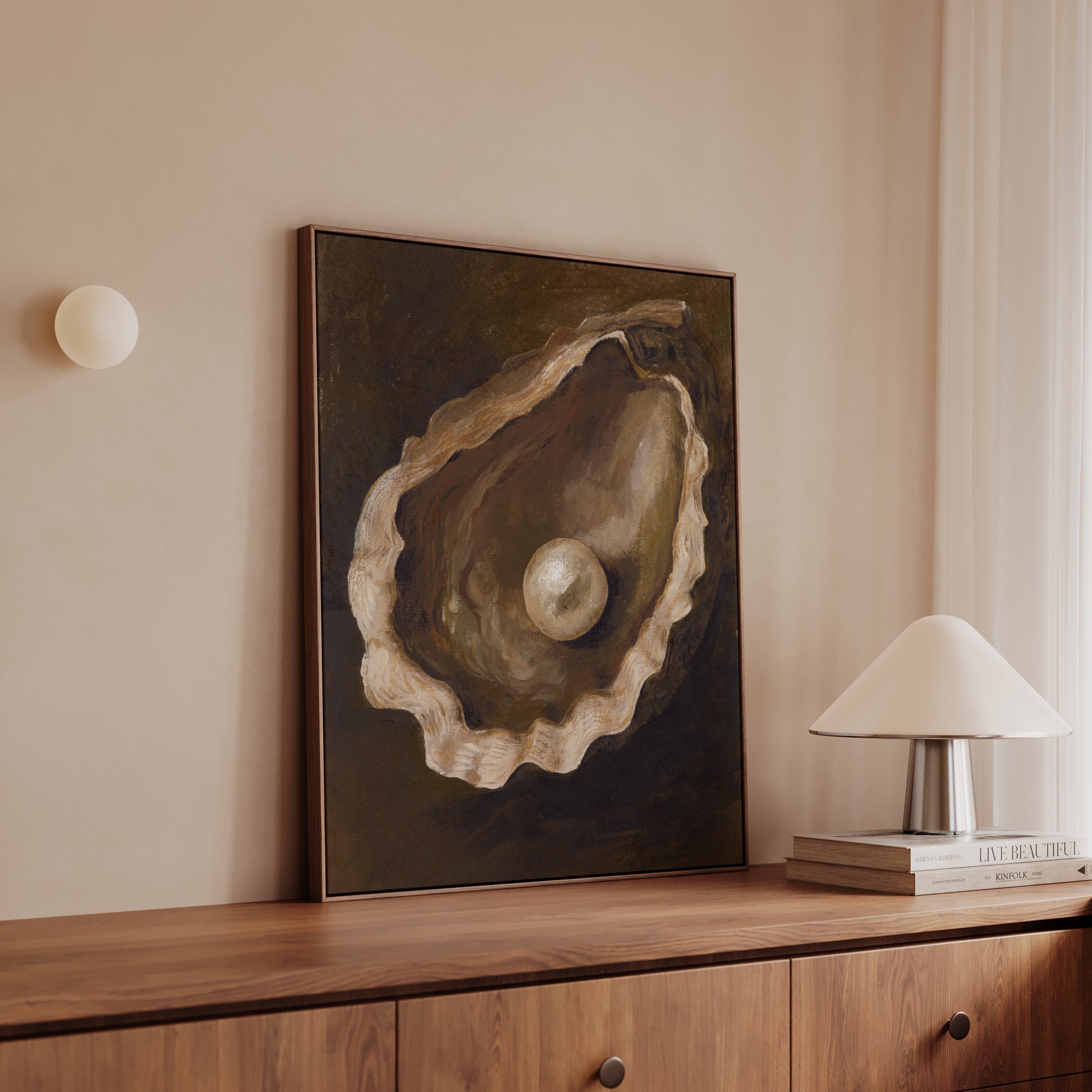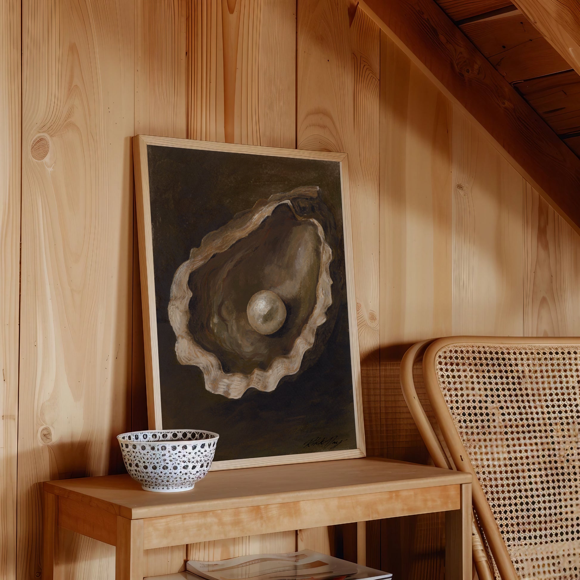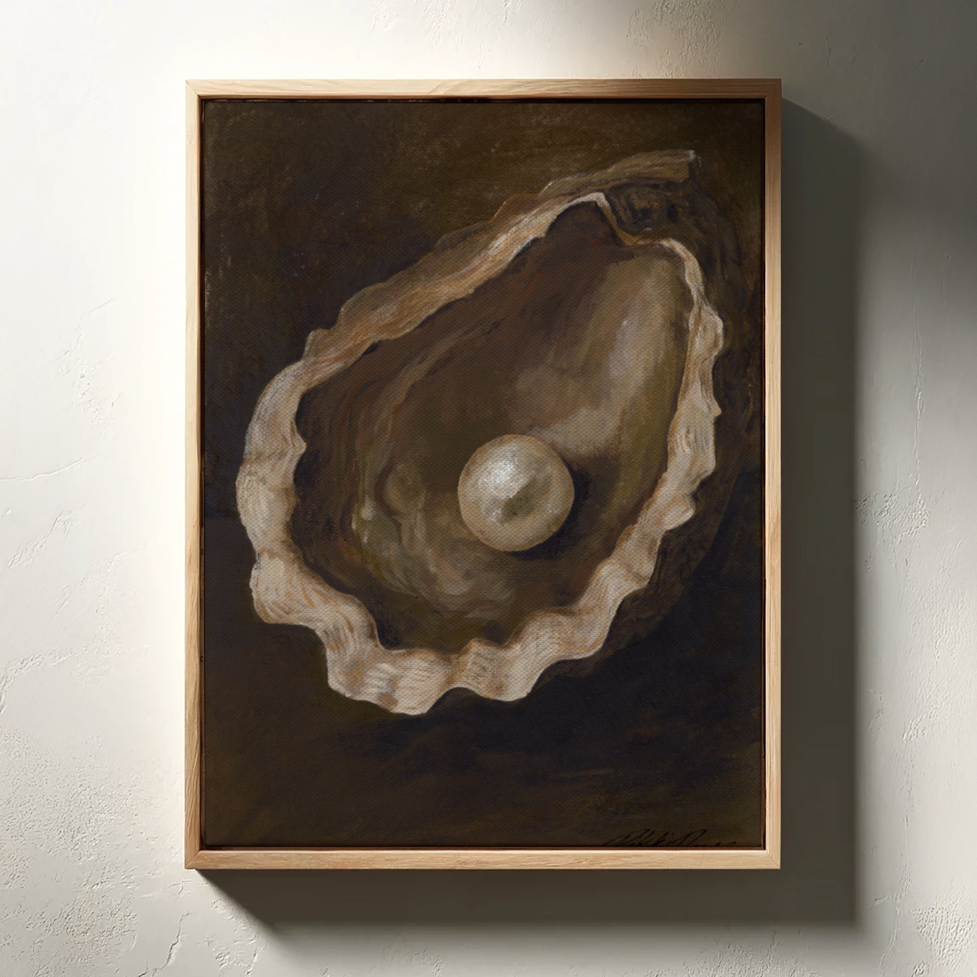 Artwork Story: Soft, tonal, intriguing and dynamic, the oyster. Pearls are made when some sort of irritant like a piece of shell or sand enters the oyster. As a protective method the oyster coats the imperfection with a substance called mother of pearl. It can take years but eventually the "imperfection" becomes the pearl. I think this is a beautiful metaphor for life. Our imperfections over time often becoming our most treasured features.